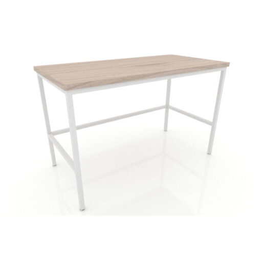 Mesa multiusos tradicional, cubierta en melamina 28mm. con canto PVC y estructura metálica de 1” tubular cuadrada con refuerzo cal. 18 en pintura horneada, nivelador de altura ajustable.