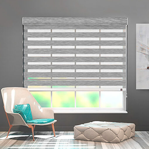 Persiana sheer elegance Luxury con control heavy duty. Caja, cadena y contrapeso combinados a color de tejido. Incerto en fascia. Tejido jaspeado con trama de hilo combinado. COLORES A ELEGIR”
