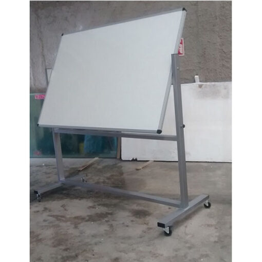 Pizarrón giratorio con pedestal y rodajas: Estructura en: Perfil rectangular Metalico de 3×1 ½” Cal. 18, terminado en Pintura epoxica, color a elegir, rodajas de uso rudo de 75mm Superficies de Escritura: Melamina Cristalizada, Varias medidas disponibles. Tablero de Escritura Enmarcado En Perfil canal de aluminio anodizado de 27mm Natural C/Estrias Reforzantes y decorativas, esquina redondeadas con regaton en Polipropileno Negro