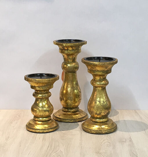 Trio de porta velas color oro, ideal para complementar la decoración de tu espacio