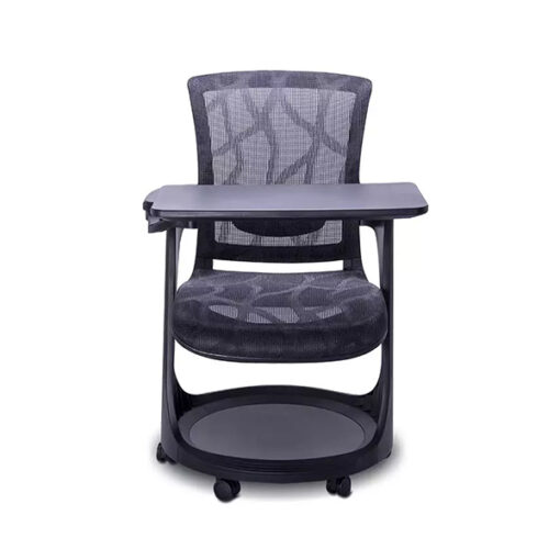 Pupitre skate training con estructura en polipropileno de alto impacto, base circular como espacio de guarda, rodamientos con recubrimiento de poliuretano, respaldo y asiento con diseño ergonómico en mesh de nylon con soporte lumbar, tableta de escritura multi-posicional.