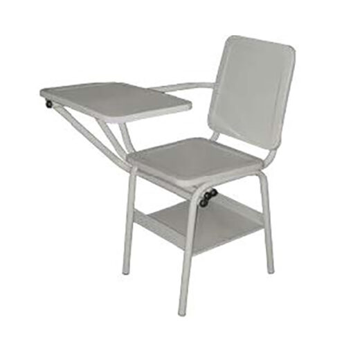 Pupitre Escolar Metálico, estructura en tubo redondo 1” en cal. 18, electrosoldada con microalambre. Asiento respaldo y paleta en lamina calibre 22, papelera en lámina cal. 20, y triple refuerzo en la paleta. Terminado con tratamiento anticorrosivo acabado con esmalte epóxico o Pintura Electrostática