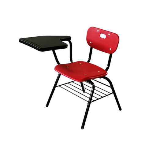 Pupitre Escolar con Estructura en tubo redondo de 1” en cal. 18, y parrilla porta útiles, electrosoldada con microalambre y con tratamiento anticorrosivo acabada con esmalte epóxico. Asiento y respaldo de plástico inyectado en polipropileno varios colores disponibles. Paleta en P , en polipropileno color negro