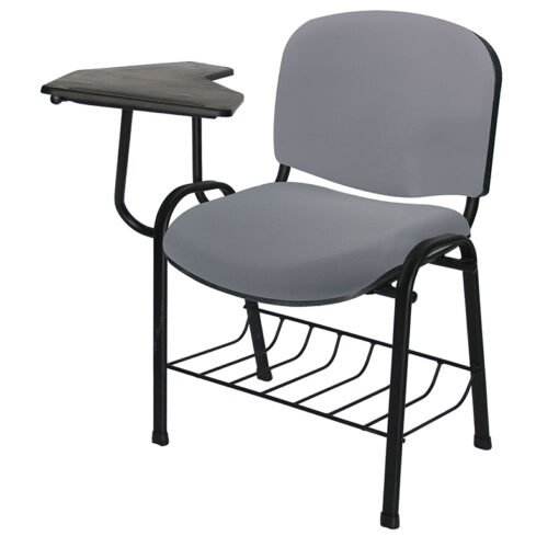 Pupitre escolar con estructura: de acero tubular ovalado de 1 1/4″ X 19/32″, calibre 18; con acabado de pintura epóxica (electrostática) color negro mate. Parrilla: en perfíl pulido redondo de acero en 3/16″ de diámetro. Respaldo y asiento: hule espuma laminado flexible con densidad de 22 kgs/m3 en el respaldo y 24 kgs/m3 en el asiento y alta resilencia. Paleta: color negro, azul, rojo, gris en copolimero de polipropileno de alta densidad, en 1/2″ de espesor con embutido para lápiz. Tapiz: tela o viníl al color de su elección de nuestro catálogo. Peso máximo de resistencia: 120 kgs. NOTA: disponible con paleta lateral lado izquierdo (fabricación sobre pedido). La paleta en color rojo, azúl o gris es sobre pedido y un mínimo de 300 pzs.