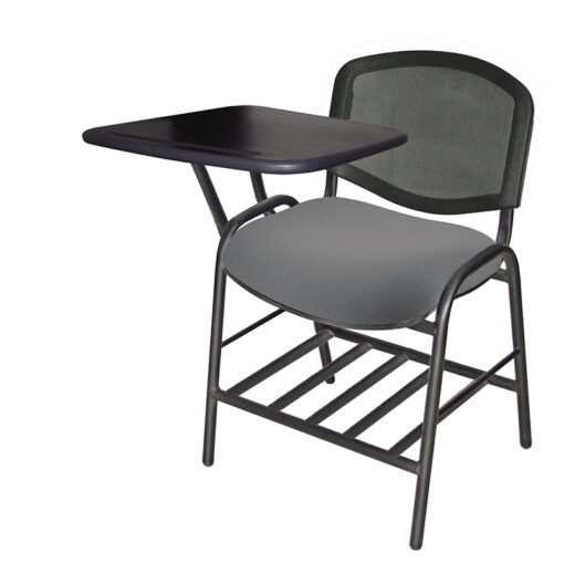 Pupitre escolar con estructura: de acero tubular 1″ de diámetro, calibre 18; con acabado de pintura epóxica (electrostática) color negro mate. Parrilla: de acero tubular 1″ de diámetro, calibre 18. Respaldo: en malla de diseño ergonómico. Asiento: hule espuma laminado flexible con densidad de 24 kgs/m3 y alta resilencia. Tapiz: respaldo de malla al color de su elección de nuestra colección malla furny y asiento en tela o viníl al color de su elección de nuestro catálogo. Paleta: color negro en copolimero de polipropileno de alta densidad, en 3/4″ de espesor con embutido para lápiz. Peso máximo de resistencia: 160 kgs. Nota: disponible con paleta lateral lado izquierdo (fabricación sobre pedido).