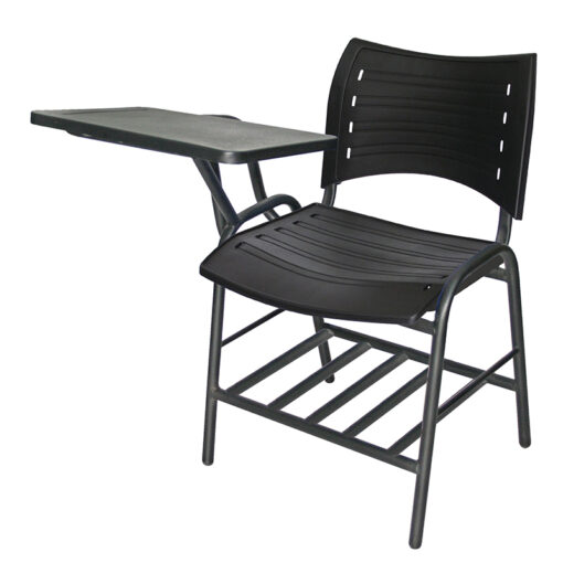 Pupitre escolar con estructura: de acero tubular 1″ de diámetro, calibre 18; con acabado de pintura epóxica (electrostática) color negro mate. Parrilla: de acero tubular 1″ de diámetro, calibre 18. Asiento y respaldo: en dos piezas en polipropileno de alta resistencia y duración, con diversas perforaciones en forma de óvalo. Color: negro, gris, verde, rojo, azul o naranja. Paleta: en lámina de acero troquelado calibre 20, con ceja perimetral. Peso máximo de resistencia: 160 kgs. Nota: disponible con paleta lateral lado izquierdo (fabricación sobre pedido).