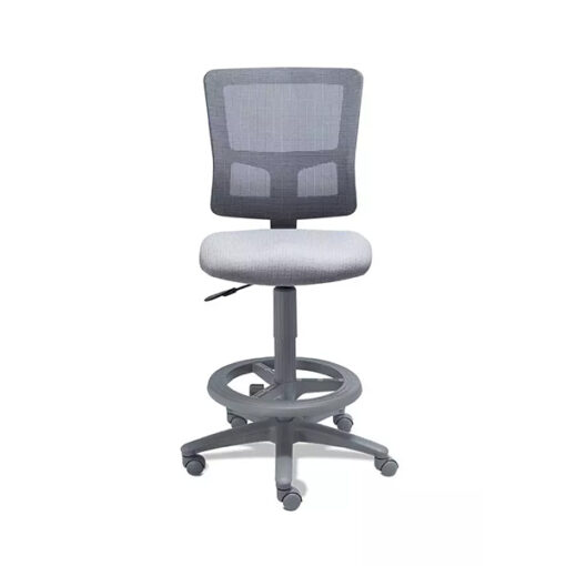 Silla operativa de la familia quadra versión banco alto con diseño ergonómico. Cuenta con un marco estructural color gris, con ajustable de altura en respaldo por medio de sistema de cremallera, además de un aro descansa pies. Compatible también con ciertos accesorios; descansa brazos fijos, entre otros.