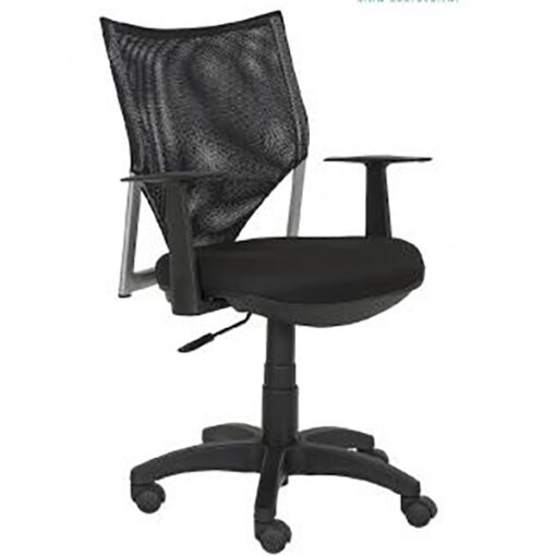 Silla secretarial respaldo en malla varios colores, asiento tapizado en tela color a elección, base de 5 puntas de 24″ con rodajas, mecanismo con ajuste de altura, descansa brazos de polipropileno color negro