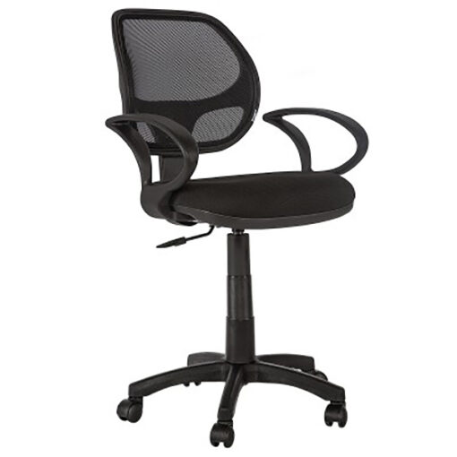 Silla secretarial respaldo en malla varios colores, asiento tapizado en tela color a elección, base de 5 puntas de 24″ con rodajas, mecanismo con ajuste de altura, descansa brazos de polipropileno color negro