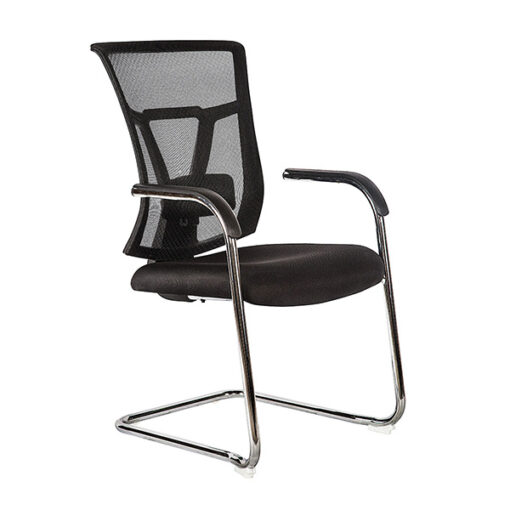 Silla visitante respaldo en malla color negro y asiento tapizado en tela de su elección (consultar catalogo), hule tipo poliuretano de inyección d. 45 kg/m³, base tipo trineo terminado en cromo con brazos, todas las partes de plástico son en polipropileno.
