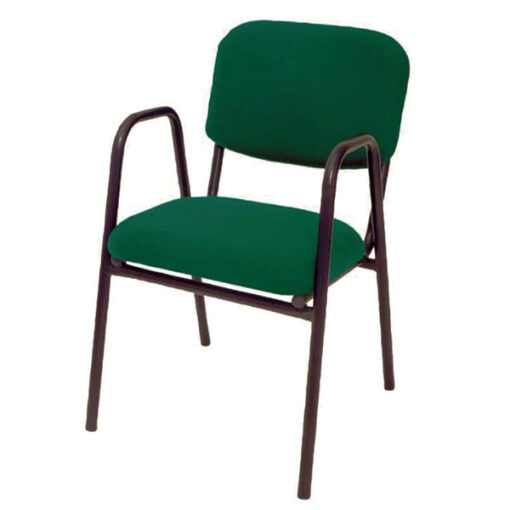 Silla Visitante estibable, estructura en tubular redondo de 1” cal. 18, terminado en pintura epóxica texturizada color negro, tapones de polietileno en terminales para evitar rayaduras a pisos., asiento y respaldo con base de aglomerado de 16 mm. tapizada variedad de colores (consultar catalogo tapices), con fijaciones a estructura, acojinamiento hule espuma en asiento 5 cm. de espesor d. 30 kgs/m³ y respaldo 3 cms. de espesor d.30 kgs/m³. Descansabrazos en tubular redondo de 1″ calibre 18 integrados a la estrcutura