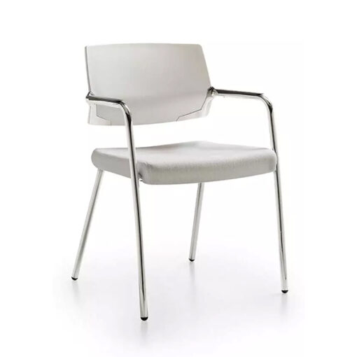 Silla de visita de la familia cool. Cuenta con diseño ergonómico en su respaldo elaborado en polipropileno y asiento tapizado en tela. Su base es de acero tubular redondo cal. 13 de 4 puntos terminado en pintura electrostática o cromo.