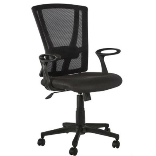 Sillón semi-ejecutivo de respaldo en malla color negro y asiento tapizado en variedad de colores (consultar catalogo tapices), hule tipo poliuretano inyectado d. 45 kg/m³, mecanismo ejecutivo de respaldo reclinable y regulador de tensión, brazos ergonómicos de polipropileno y base ejecutiva en nylon, todas las partes de plástico son en polipropileno.