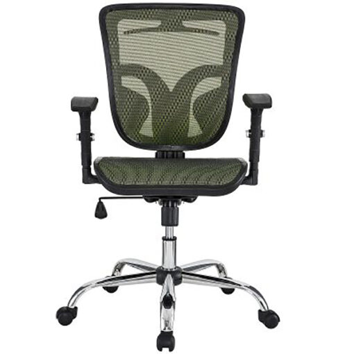 Sillón Semi Ejecutivo pistón y base de estrella en cromo, respaldo y asientos tapizados en malla tipo flex, mecanismo ejecutivo de respaldo reclinable y regulador de tensión, brazos ajustables. Todas las partes de plástico son en polipropileno. Colores: azul, verde y negro.