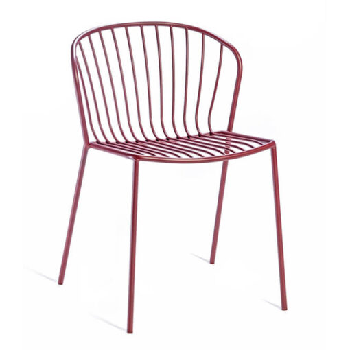 Diseñada por Forsix, es una silla sin brazos de exterior con líneas clásicas y elegantes. El asiento apilable de tubo de acero, de formas amplias y acogedoras, es extremadamente cómodo una vez sentado.