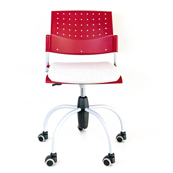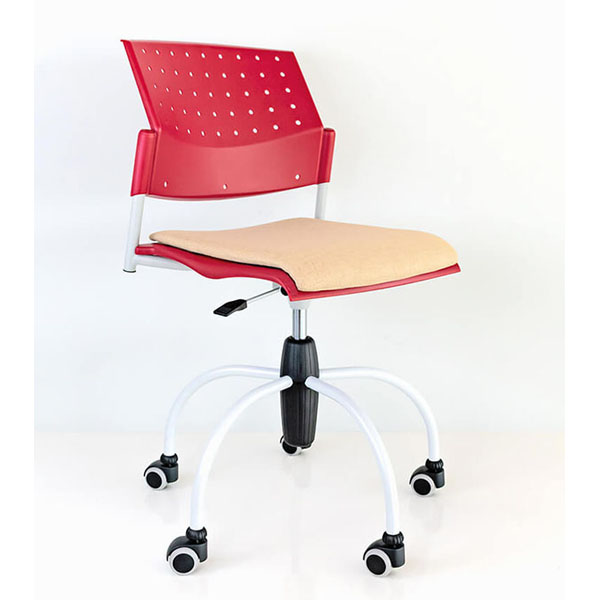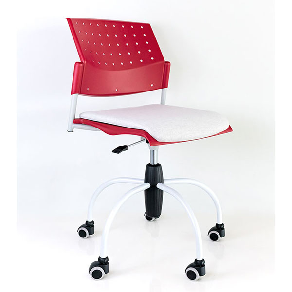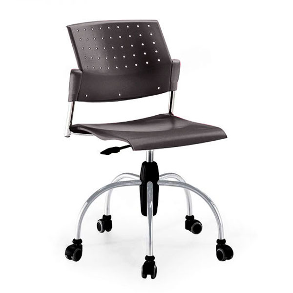 Silla con asiento y respaldo en polipropileno, con base giratoria con base giratoria de 5 puntas en cromo con rodajas, ajuste altura con pistón. Para uso interno. Juego de brazos opcional.