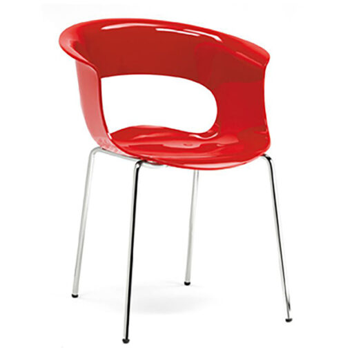 Cuerpo en policarbonato transparente y sólidos brillantes, con estructura cromada.