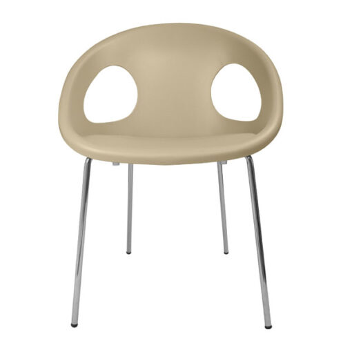 Su diseño la convierte en un elemento distintivo de diseño de cualquier espacio. Cuerpo principal de tecnopolímero reciclable. Acero cromado 4 patas 16 mm diam. marco de tubo, para uso interior.