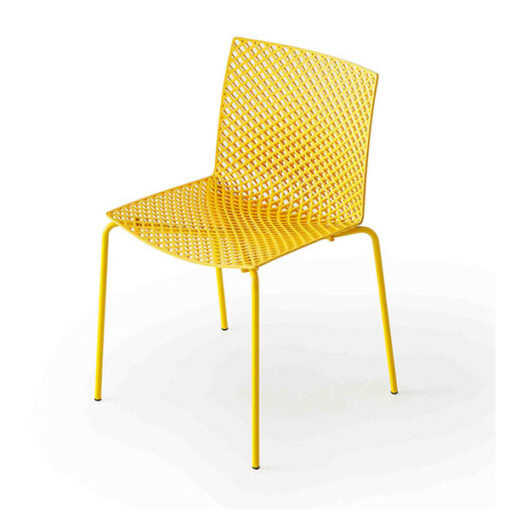 Silla elaborada en tecnopolímero, tecnología inyección 3D, con base de trineo en acero pintado con recubrimiento para exterior. Para uso interno y externo. Apilable.