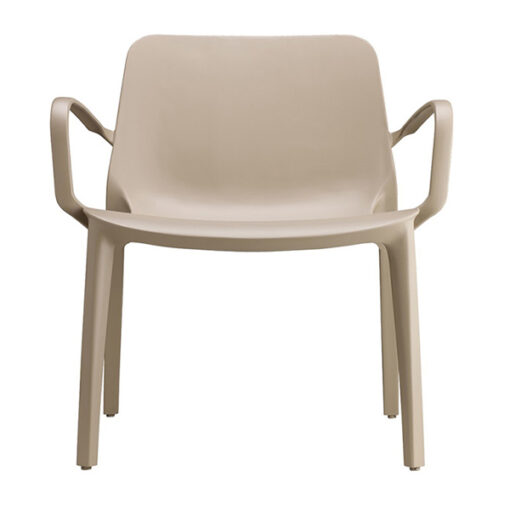Silla tipo lounge elaborada en tecnopolímero, reforzada con fibra de vidrio por medio de tecnología air moulding. Apilable. Para uso interno y externo.