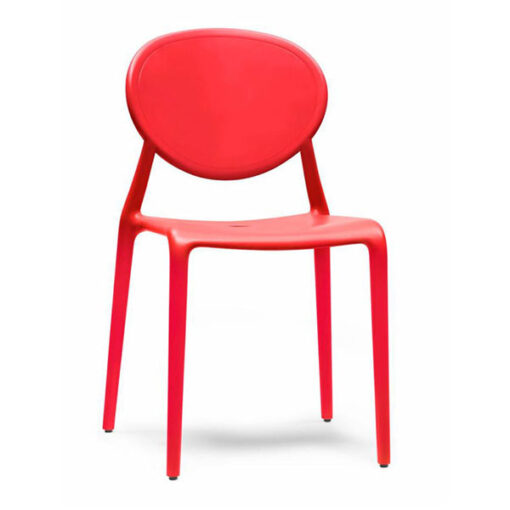 Silla de 4 patas elaborada con tecnología air moulding en polipropileno reforzado con fibra de vidrio respaldo en forma circular. Para uso interno y externo. Apilable.