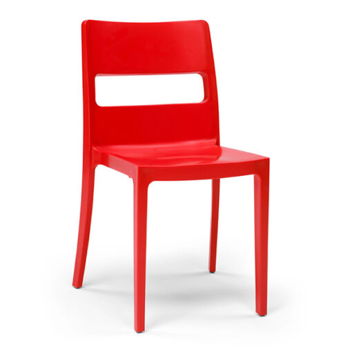 Silla de 4 patas elaborada con tecnología air moulding en polipropileno reforzado con fibra de vidrio. Para uso interno y externo. Apilable.