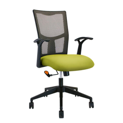Silla operativa de respaldo medio, asiento tapizado en tela , respaldo tapizado en malla flex o heavy flex en 4 colores diferentes, brazos de polipropileno reforzado, asiento en madera domada, base spider y rodaja de 60 mm