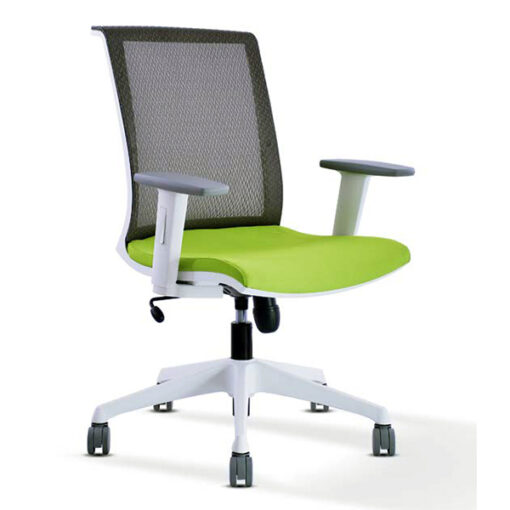 Sillón operativo de respaldo alto, estructura de una sola pieza fabricada en color blanco, mecanismo ejecutivo giratorio reclinable, brazos en color blanco con pad en color gris, base de 5 puntas en color blanco con rodajas de 60 mm en color gris , respaldo tapizado en malla y asiento tapizado en tela