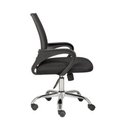 Silla Para Oficina Silla Ergonomica Con Respaldo Inclinable, este modelo de nuestra Linea Económica cuenta con con respaldo tapizado en malla color negro y asiento en tapiz tela color negro, mecanismo ejecutivo reclinable con de ajuste de altura, base cromada de 5 puntas con rodajas, Sillas de oficina ideales para ejecutivos, personal operativo, Sillas para Trabajo