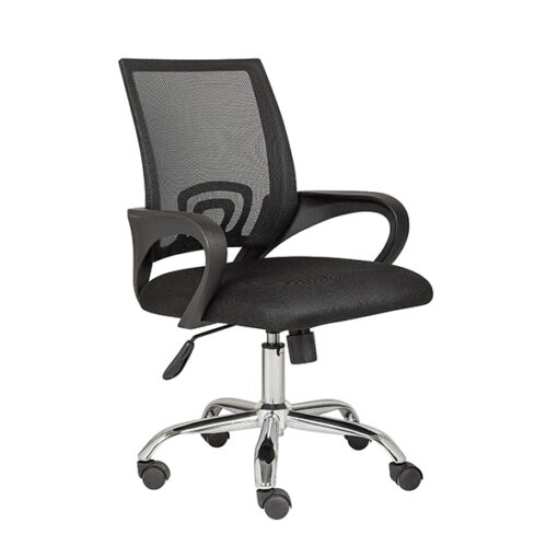 Silla Para Oficina Silla Ergonomica Con Respaldo Inclinable, este modelo de nuestra Linea Económica cuenta con con respaldo tapizado en malla color negro y asiento en tapiz tela color negro, mecanismo ejecutivo reclinable con de ajuste de altura, base cromada de 5 puntas con rodajas, Sillas de oficina ideales para ejecutivos, personal operativo, Sillas para Trabajo