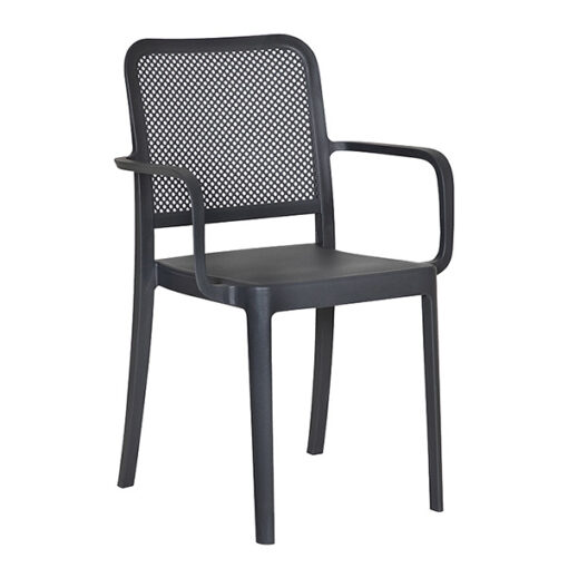Silla con brazos con respaldo y asiento de polipropileno para exteriores, con protección UV, apilable, regatón antiderrapante en polipropileno, para evitar ralladuras en piso. COLORES Oxford & Arena