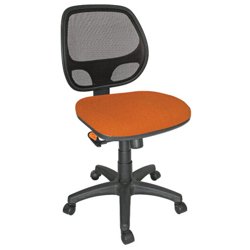 Silla Secretarial base: estrella de 5 puntas en nylon reforzado, rodajas tipo dual y/o regatones. Elevación: por medio de pistón neumático que permite ajustar la altura del asiento. Mecanismo: plato de acero reforzado tipo articulado synchro con sistema de reclinación y palanca de bloqueo, perilla de regulación de tensión para el sistema de reclinación. Respaldo: bastidor en polipropileno de alta resistencia y duración. Asiento: hule espuma de poliuretano inyectado con densidad de 60 kgs/m3 con retardante a la flama y alta resilencia. Tapiz: espaldo al color de su elección de nuestra colección malla furny y asiento en tela o viníl al color de su elección de nuestro catálogo. Peso máximo de resistencia: 90 kgs. Disponible también en color gris con base de aluminio