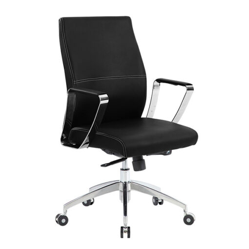 Silla Semi Ejecutiva respaldo con interior de triplay en 5 capas, tapizado en vinil, colores negro, crema & café, asiento con hule espuma de 6 cms. de espesor con densidad 35g/m3, tapizado en vinil, colores negro, crema & café, mecanismo synchro, con sistema en ajuste de elevación y reclinable con bloqueo, pistón ejecutivo cromado, base cromada con diseño KD (knock-down) de 27” de 5 puntas y rodajas de 60 mm. y con detalle en cromo, brazos ergonómicos cromados con funda en vinil, colores negro, crema & café.
