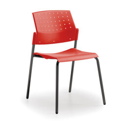 Silla con asiento y respaldo en polipropileno, con base de 4 patas en tubular de acero pintado en NEGRO, GRIS O CROMO. Estibable, para uso interno.