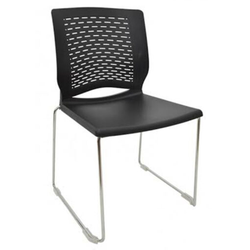Silla para visitante fabricada en estructura de acero de cold roled, estructura superior en plástico de diferentes colores, respaldo con perforaciones. Acabado en cromo