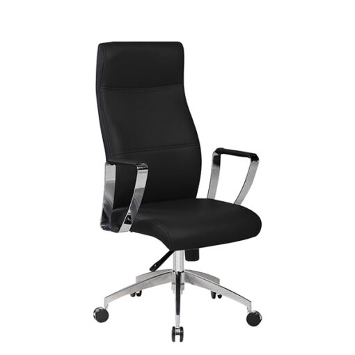 Sillón Ejecutivo respaldo con interior de triplay en 5 capas, tapizado en vinil, colores negro, crema & café, asiento con hule espuma de 6 cms. de espesor con densidad 35g/m3, tapizado en vinil, colores negro, crema & café, mecanismo syncro, con sistema en ajuste de elevación y reclinable con bloqueo, pistón ejecutivo cromado, base cromada con diseño KD (knock-down) de 27” de 5 puntas y rodajas de 60 mm. y detalle en cromo, brazos ergonómico cromados con funda en vinil, colores negro, crema & café.