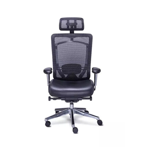 Sillón ejecutivo con cabecera ajustable dynamic tapizado en piel. Cuenta con un mecanismo de reclinamiento synchro con 4 posiciones con maneral para regular la tensión y antishock, además con ajuste de profundidad de asiento. Cuenta con soporte lumbar independiente al marco del respaldo, sus descansabrazos son ajustables en altura y tienen codera suave al tacto. Su base de 5 puntas y marco estructural son elaborados en aluminio pulido