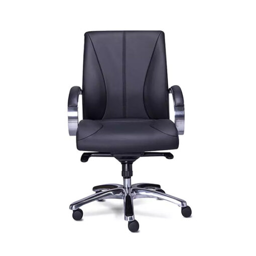 Sillón ejecutivo en piel respaldo bajo. Cuenta con mecanismo de reclinamiento con bloqueo en 4 posiciones y regulador de tensión a través de un maneral. Su acojinamiento es en poliuretano inyectado de alta densidad con retardante al fuego y sus brazos son de aluminio pulido con codera acojinada y la base de 5 puntas elaborada también en aluminio pulido.