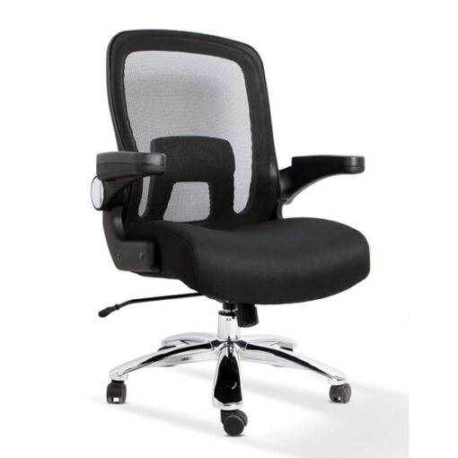 Sillón operativo de uso pesado con capacidad de carga hasta 180 Kgs. Base metálica cromada con refuerzo en tubo. Rodajas de uso pesado. Pistón clase 4 de uso rudo. Asiento de madera moldeada acojinamiento en poliuretano inyectado indeformable. Respaldo de polipropileno de alta resistencia tapizado en malla flexible de uso intensivo soporte lumbar ajustable en respaldo, descansabrazos laterales con pad de poliuretano con mecanismo abatible para liberar el área útil de asiento. Sillón de especialidad con capacidad de carga a 500 libras (180 Kgs.)