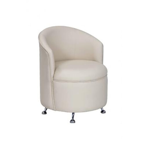 Sofá de 1 plaza estructura de sinotubo de 60 cm. de diámetro con partes de madera de pino en la circunferencia, parte baja terminada en bonfort, patas cromadas con tapón de polipropileno para evitar rayaduras a pisos. Respaldo y asiento tapizados en variedad de colores (consultar catalogo tapices). Acojinamiento hule espuma en asiento de 8 cms. De espesor y respaldo de 5 cms. De espesor, d.20 kgs/m³