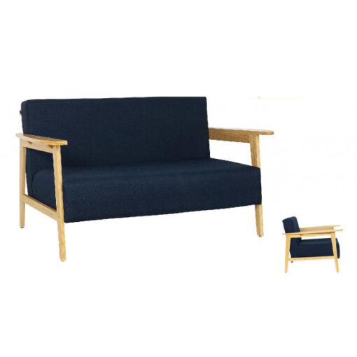 Sofá de 2 plazas con estructura en madera de pino solida de 21 mm. de primera calidad, rafia entretejida al bastidor para mayor firmeza, estructura ligada con bandastic #5 entrelazado, parte baja terminada en bonfort. Brazos en madera de pino, acojinamiento de hule espuma en asiento de 8 cms. de espesor d.20 kgs/m³ y respaldo 5 cms. de espesor d.20 kgs/m³. Asiento y respaldo tapizados en una variedad de colores disponibles (consultar catalogo de tapices). Nivelador para ajuste en patas.