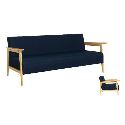 Sofá de 3 plazas con estructura en madera de pino solida de 21 mm. de primera calidad, rafia entretejida al bastidor para mayor firmeza, estructura ligada con bandastic #5 entrelazado, parte baja terminada en bonfort. Brazos en madera de pino, acojinamiento de hule espuma en asiento de 8 cms. de espesor d.20 kgs/m³ y respaldo 5 cms. de espesor d.20 kgs/m³. Asiento y respaldo tapizados en una variedad de colores disponibles (consultar catalogo de tapices). Nivelador para ajuste en patas.