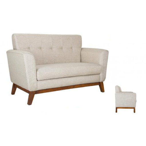Sofá de 2 plazas con estructura madera de pino solida de 21 mm. de primera calidad, rafia entretejida al bastidor para mayor firmeza, estructura ligada con bandastic #5 entrelazado, patas de madera de pino, parte baja terminada en bonfort. Respaldo y asiento tapizados en variedad de colores (consultar catalogo tapices). Acojinamiento hule espuma en asiento de 15 cm. de espesor d. 20 kgs/m³ y respaldo 8 cm. de espesor d.20 kgs/m³.