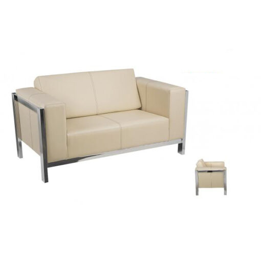 Sofá de 2 plazas con estructura en madera de pino nacional, secado al natural, calibrada a 3/4” de primera calidad, rafia entretejida al bastidor para mayor firmeza, estructura ligada con resorte zig-zag en cal. 9, enganchado al bastidor con grapas zig zag de seguridad para mayor soporte y durabilidad, entrelazado con rafia entre el resorte y bastidor para mayor resistencia, parte baja terminada en bonfort, grapas fifa de 2” y 1½” cementada en casco. Base metálica rectangular de 3″x½» en cal. 16 y rectangular ¼»x3/4″ cal. 18, tapón regaton de polipropileno de 3″x½» para evitar rayaduras en piso, terminado en cromo. Acojinamiento hule espuma en asiento de 13 cm. De espesor d.20 kgs/m³, respaldo de 15 cms. De espesor d.20 kgs/m³, tapizado en una variedad de colores disponibles (consultar catalogo)