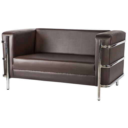 Sofá de 2 plazas con estructura en madera de pino solida de 21 mm. de primera calidad, resorte zig-zag enganchado al bastidor con grapas de seguridad para mayor soporte y durabilidad, rafia entretejida al resorte y bastidor para mayor firmeza, parte baja terminada en bonfort. Respaldo y asiento tapizados en variedad de colores (consultar catalogo tapices). Acojinamiento hule espuma en asiento de 10 cms. D.20 kgs/m³, en respaldo de 8 cms. D.20 kgs/m³, en brazos d.17 kgs/m³. Base tubular redondo de 1¼” en cal. 18, con terminado en cromo y tapón regaton de bola color negro.