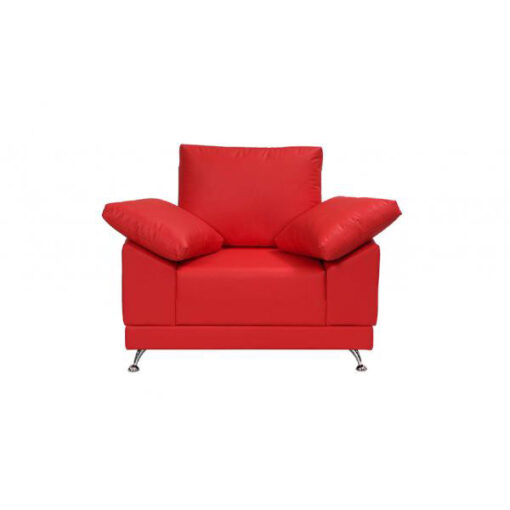 Sofá de 1 plaza con estructura en madera de pino solida de 21 mm. de primera calidad, rafia entretejida al bastidor para mayor firmeza, estructura ligada con bandastic #5 entrelazado, parte baja terminada en bonfort, patas cromada. Respaldo y asiento tapizados en variedad de colores (consultar catalogo tapices). Acojinamiento hule espuma en asiento de 13 cms. D.20 kgs/m³, respaldo con cojines fijos al respaldo con relleno en delcron greña y delcron laminado.
