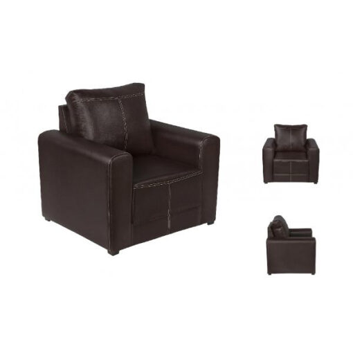 Sofá de 1 plaza con estructura en madera de pino nacional, secado al natural, calibrada a 3/4” de primera calidad, rafia entretejida al bastidor para mayor firmeza, estructura ligada con resorte zig-zag en cal. 9, enganchado al bastidor con grapas zig zag de seguridad para mayor soporte y durabilidad, entrelazado con rafia entre el resorte y bastidor para mayor resistencia, parte baja terminada en bonfort, grapas fifa de 2” y 1½” cementada en casco, costura decorativa con hilo grueso de 6.6 en nylon. Respaldo y asiento tapizados en variedad de colores (consultar catálogo de tapices). Acojinamiento hule espuma en asiento de 13 cm. de espesor d.20 kgs/m³, delcron greña en cojines.