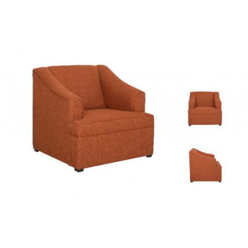 Sofá de 1 plaza con estructura en madera de pino solida de 21 mm. de primera calidad, resorte zig-zag enganchado al bastidor con grapas de seguridad para mayor soporte y durabilidad, rafia entretejida al resorte y bastidor para mayor firmeza, patas de polietileno triangular de 3 cm., parte baja terminada en bonfort. Respaldo y asiento tapizados en variedad de colores (consultar catalogo tapices). Acojinamiento hule espuma en asiento y respaldo de 8 cm. de espesor d.20 kgs/m³.