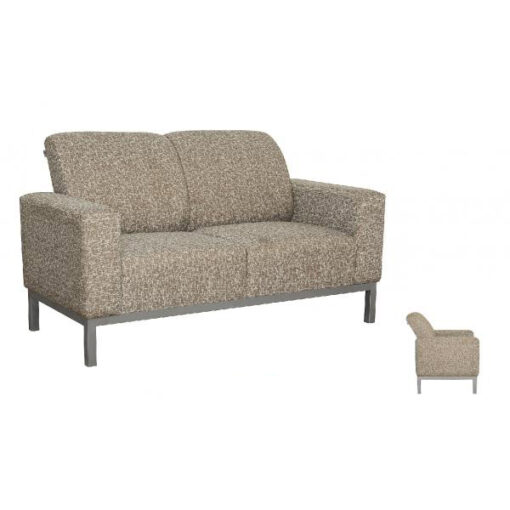 Sofá de 2 plazas con estructura en madera de pino solida de 21 mm. de primera calidad, rafia entretejida al bastidor para mayor firmeza, estructura ligada con bandastic #5 entrelazado, base de tubular cuadrada de 1½” pintada en color aluminio, parte baja terminada en costal o manta. Respaldo y asiento tapizados en variedad de colores (consultar catalogo tapices), acojinamiento hule espuma en asiento de 13 cms. de espesor en d.20 kgs/m³ y respaldo de 8 cms. De espesor en d.20 kgs/m³.